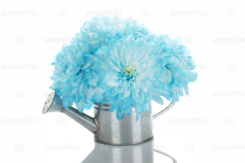 Голубые хризантемы в лейке