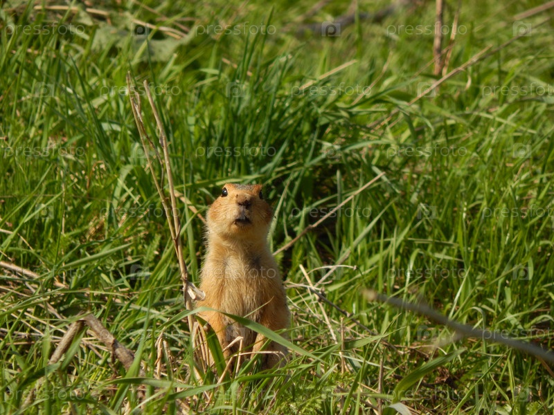Любопытный суслик в траве