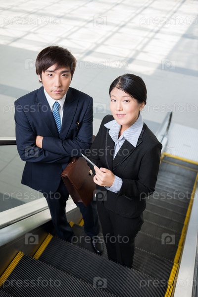 Бизнес-команда на эскалаторе