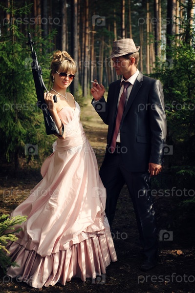 Портрет молодоженов в стиле гангстеров