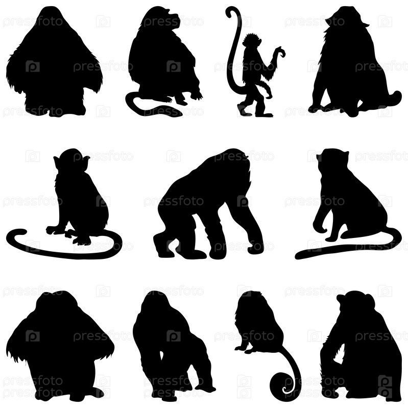 Силуэты обезьян на белом фоне