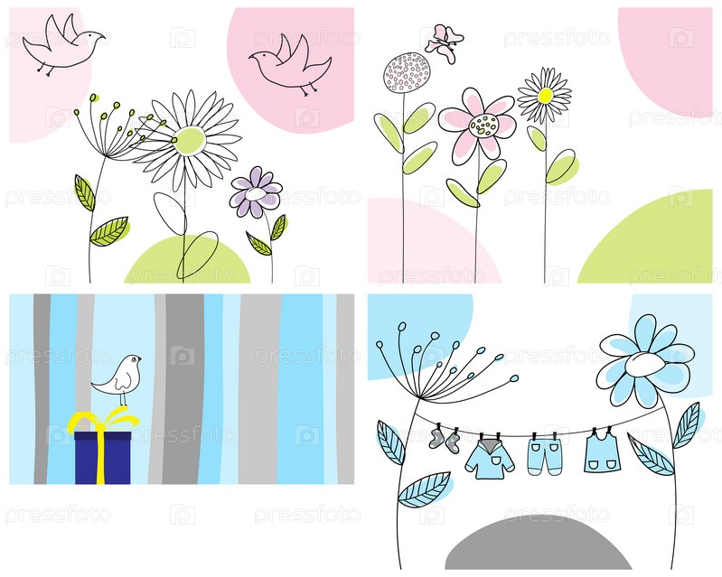 Набор из четырех поздравительных открыток, векторная иллюстрация