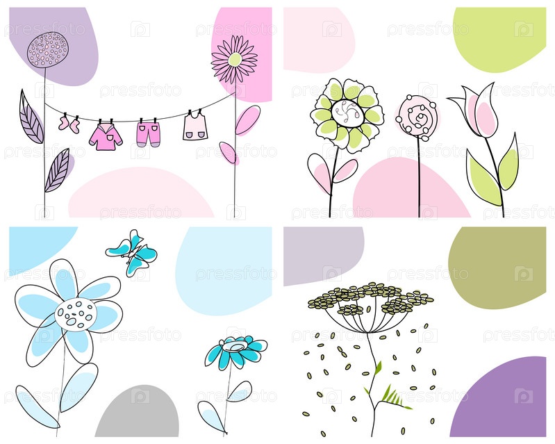 Набор из четырех поздравительных открыток, векторная иллюстрация