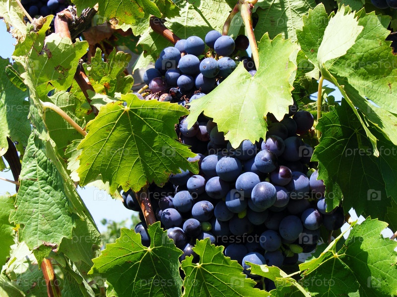 Гроздь темного винограда на лозе