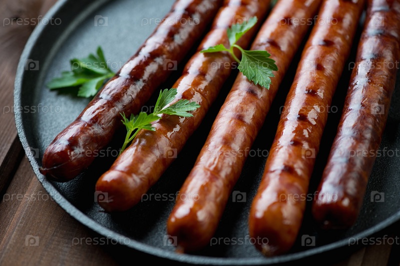 Колбаски-гриль с петрушкой, крупный план