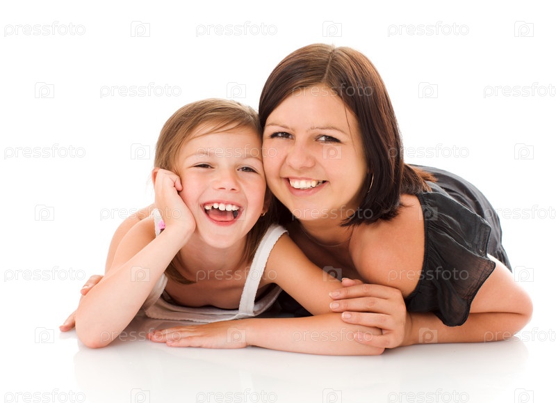 Мама и дочка на белом фоне