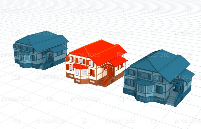 Яркий коттедж, стоящий среди одинаковых домов