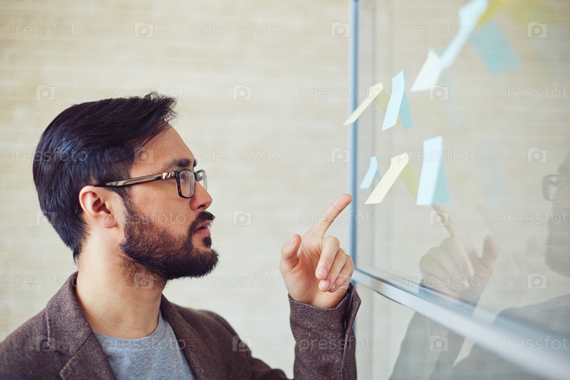 Мужчина смотрит на стикеры