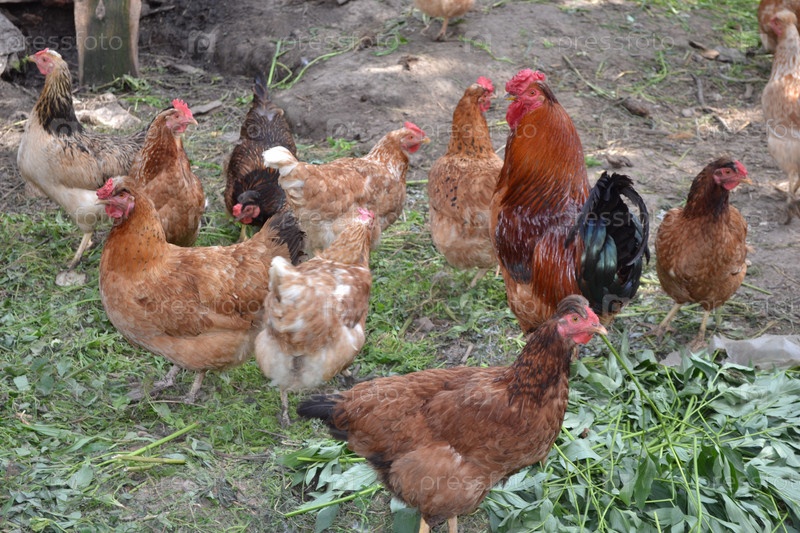 Петух и куры на птичьем дворе
