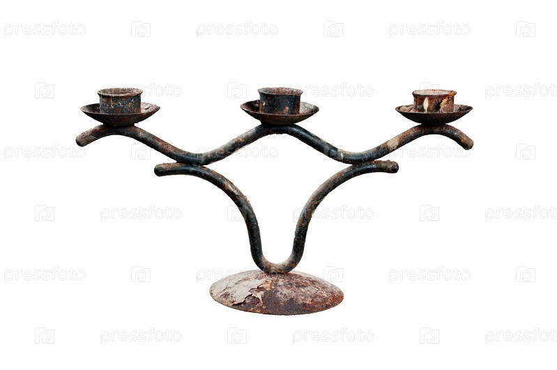 Старый металлический подсвечник на белом фоне