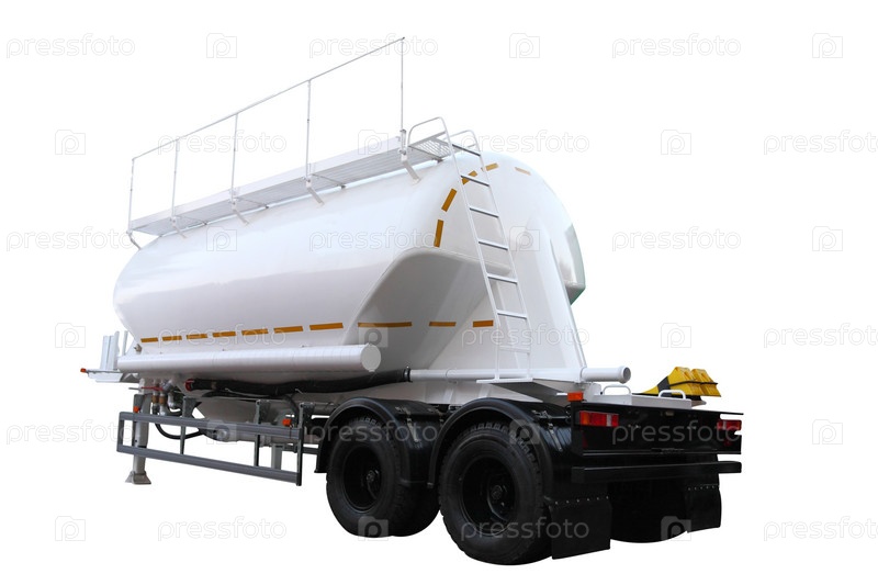 Прицеп с цистерной для перевозки цемента на белом фоне