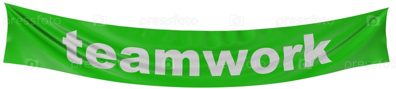 Надпись 'teamwork' на зеленом баннере