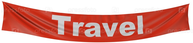 Надпись 'travel' на красном баннере