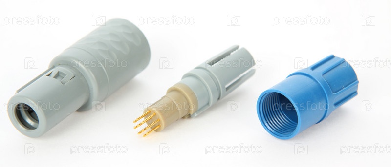 Промышленный пластиковый разъем в разобранном состоянии. Вилка