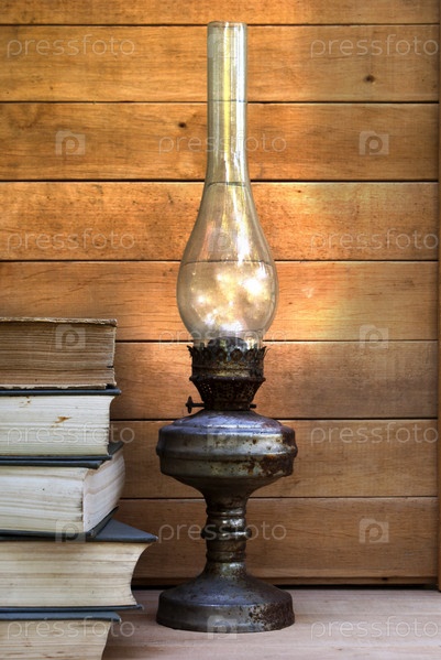 Стопка книг и керосиновая лампа