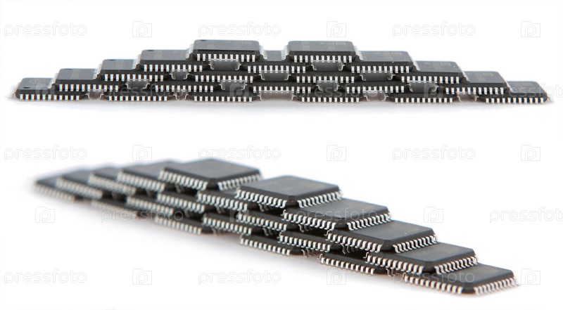 Микросхемы или микроконтроллеры на белом фоне