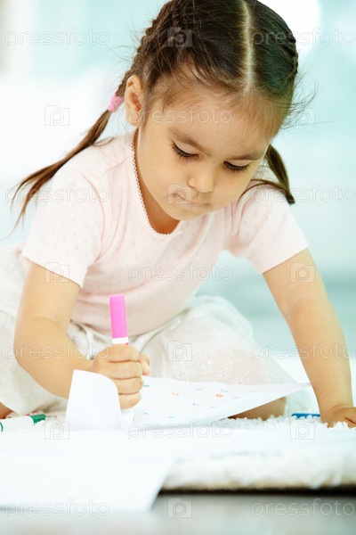 Девочка рисует на полу