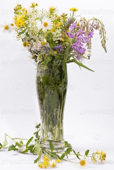 Букет цветов в вазе на белом фоне