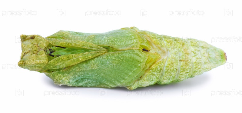 Куколка махаона-парусника, изолированная на белом фоне. Макро