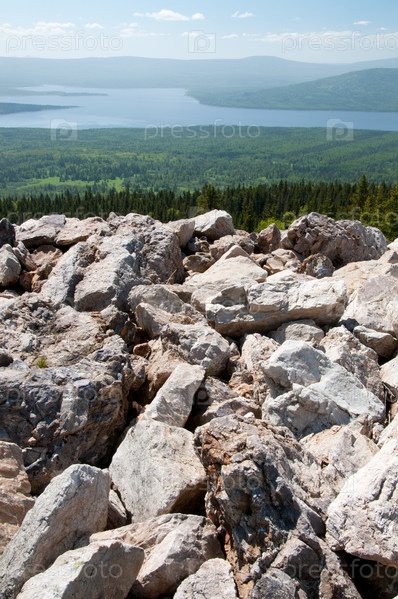 Живописный вид на озеро Зюраткуль с одноименного хребта, Челябинская область