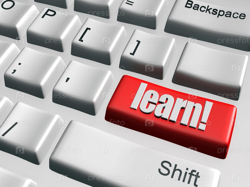 Красная кнопка 'learn' на трехмерной клавиатуре