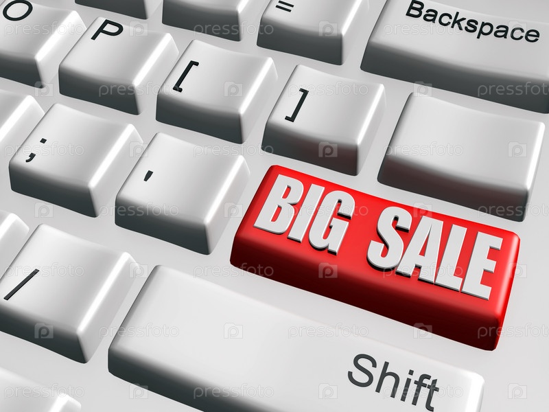 Красная кнопка 'большая продажа' на трехмерной клавиатуре