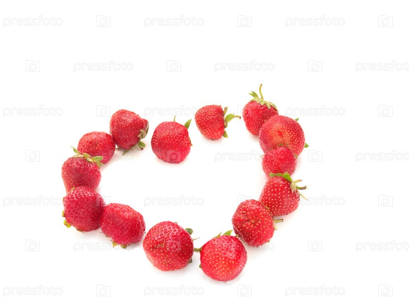 Сердце из клубники, изолированное на белом фоне