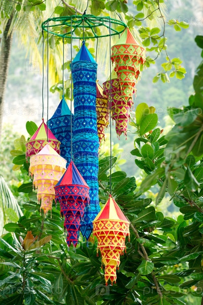 Традиционные восточные фонари висят на дереве