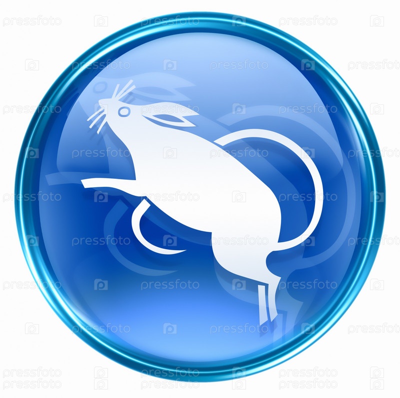 Синяя веб-иконка, знак зодиака "крыса" на белом фоне