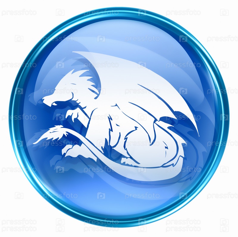Синяя веб-иконка, знак зодиака "дракон" на белом фоне