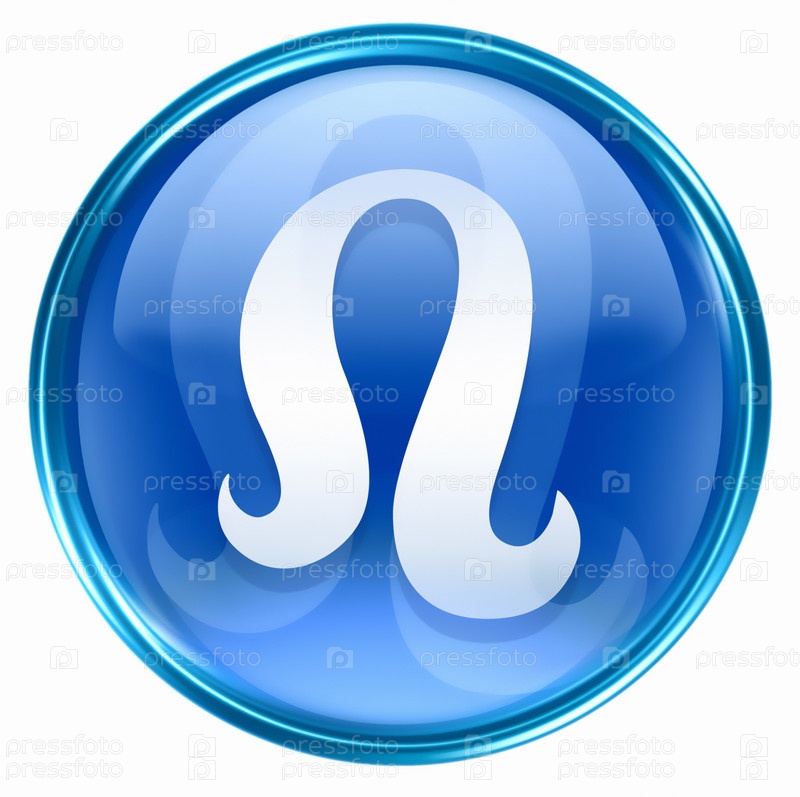 Синяя веб-иконка, знак зодиака "лев" на белом фоне