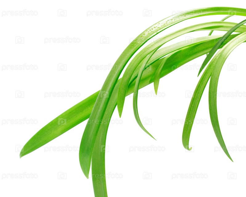 Зеленые длинные листья на белом фоне