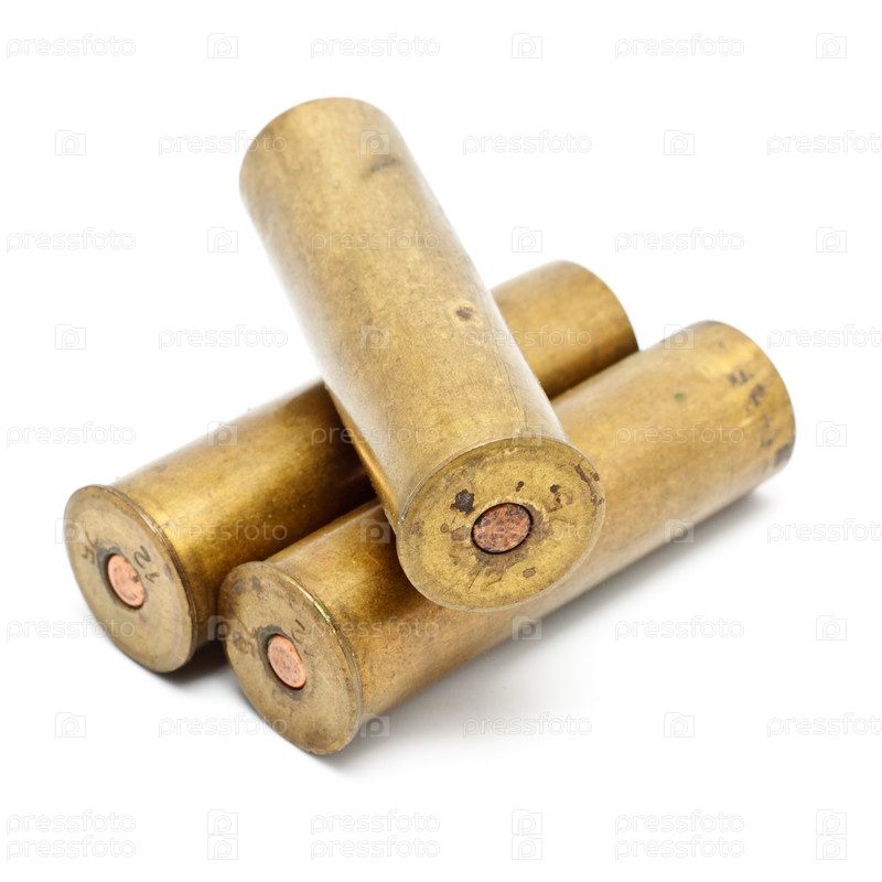 Гильзы от дробовика на белом фоне