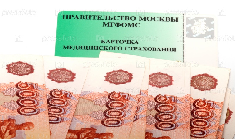 Номиналы в пять тысяч рублей и карточка обязательной медицинской страховки