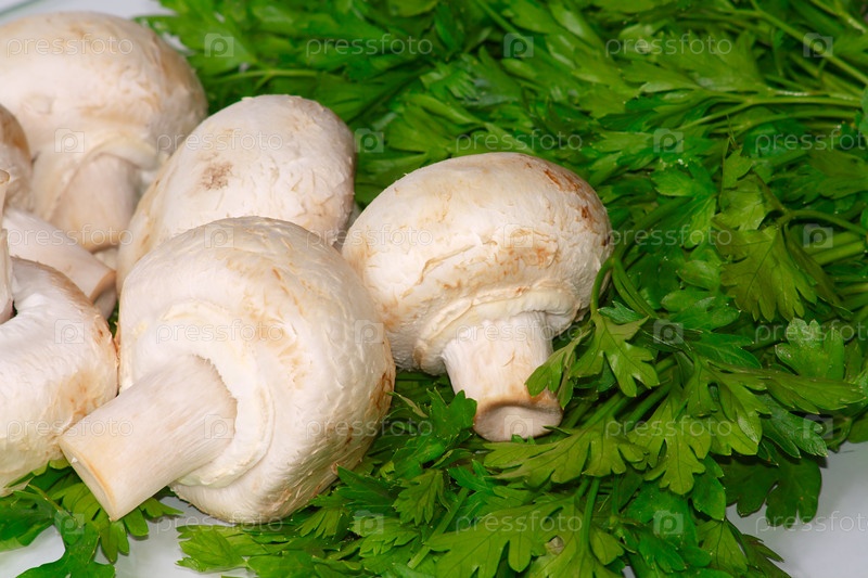 Сырые шампиньоны и петрушка