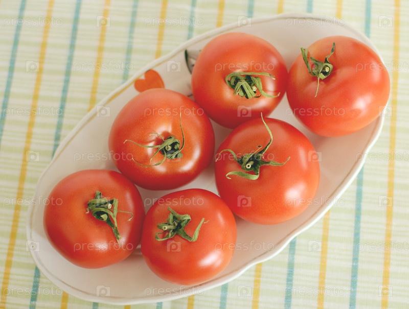 Свежие помидоры на овальном блюде