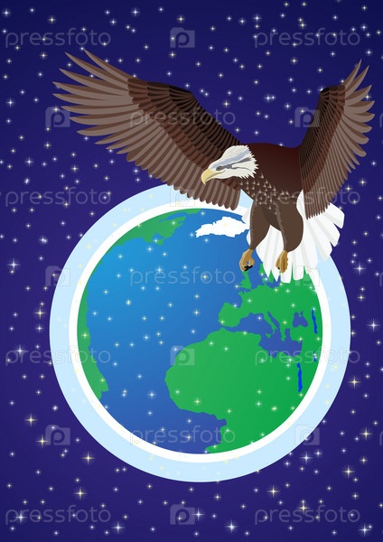 Орел, летящий в космосе на фоне планеты Земля