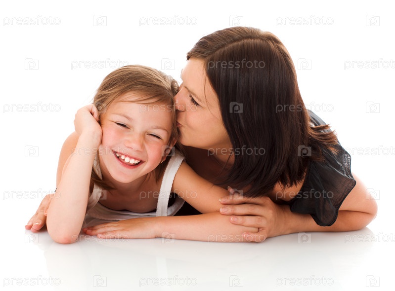 Мать и дочь на белом