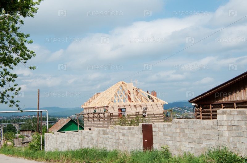 Строительство частного жилого дома на фоне панорамы горной местности