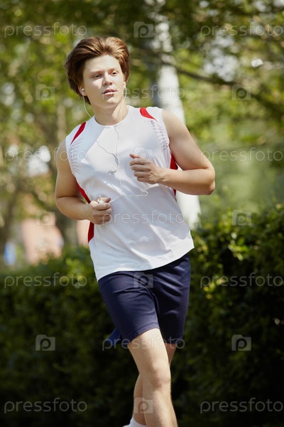 Молодой мужчина бежит в парке