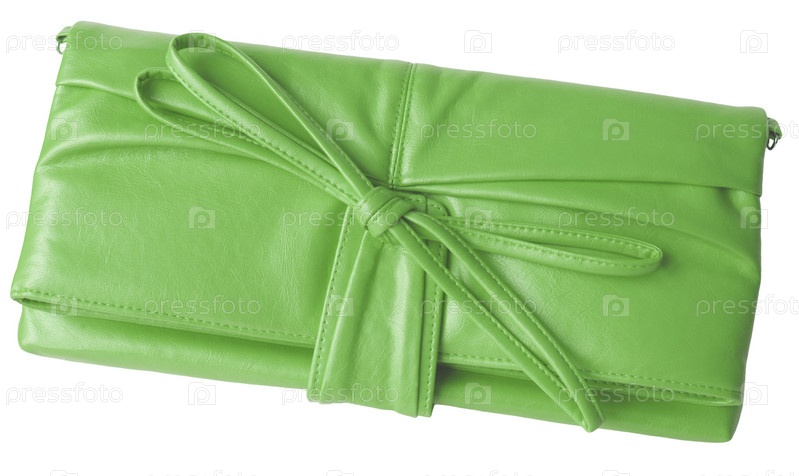 Маленькая ярко-зеленая женская сумка на белом фоне