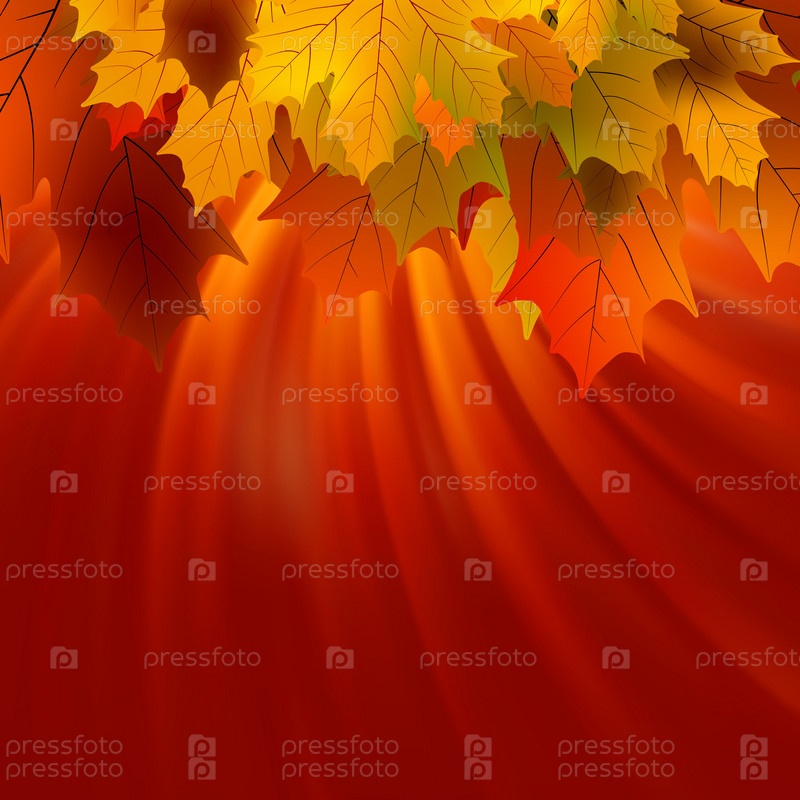 Красочные осенние листья на красном фоне