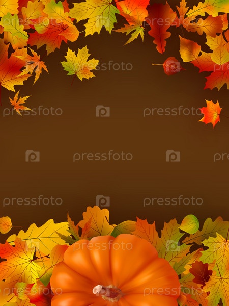 Красочные осенние листья и тыква на коричневом фоне
