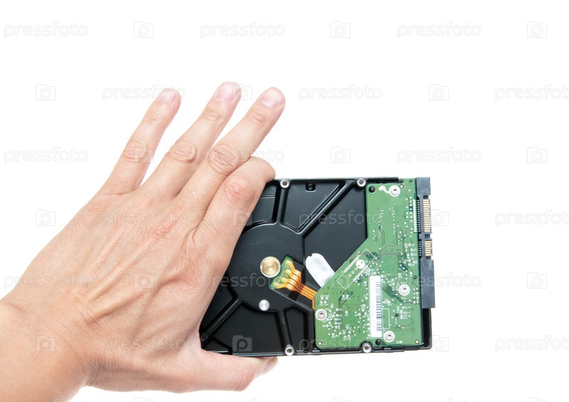 Жесткий диск в руке на белом фоне