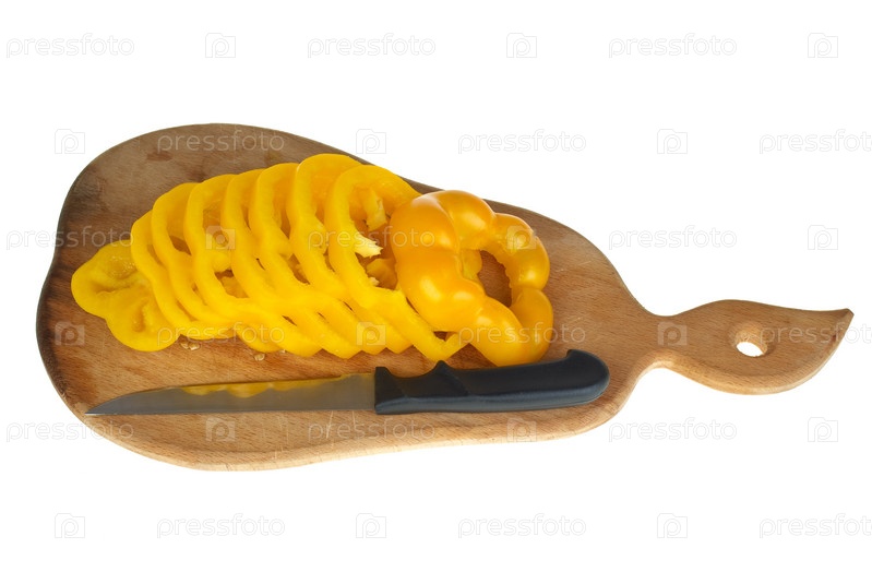 Разделочная доска с порезанным желтым болгарским перцем