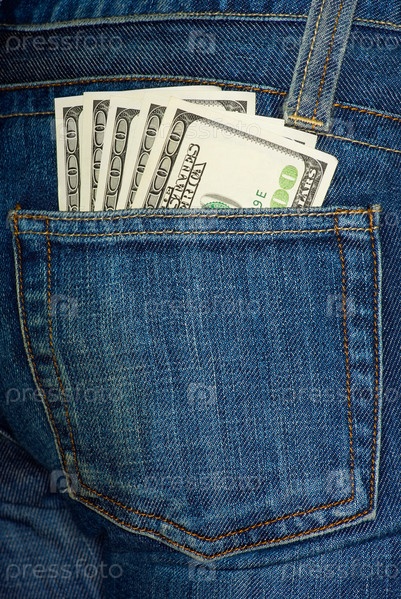 Стодолларовые купюры, торчащие из заднего кармана джинсов