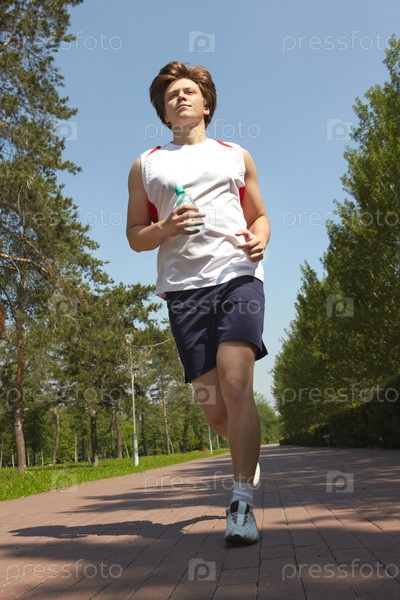 Молодой человек бегает на улице