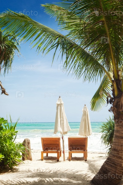 Два шезлонга на берегу моря
