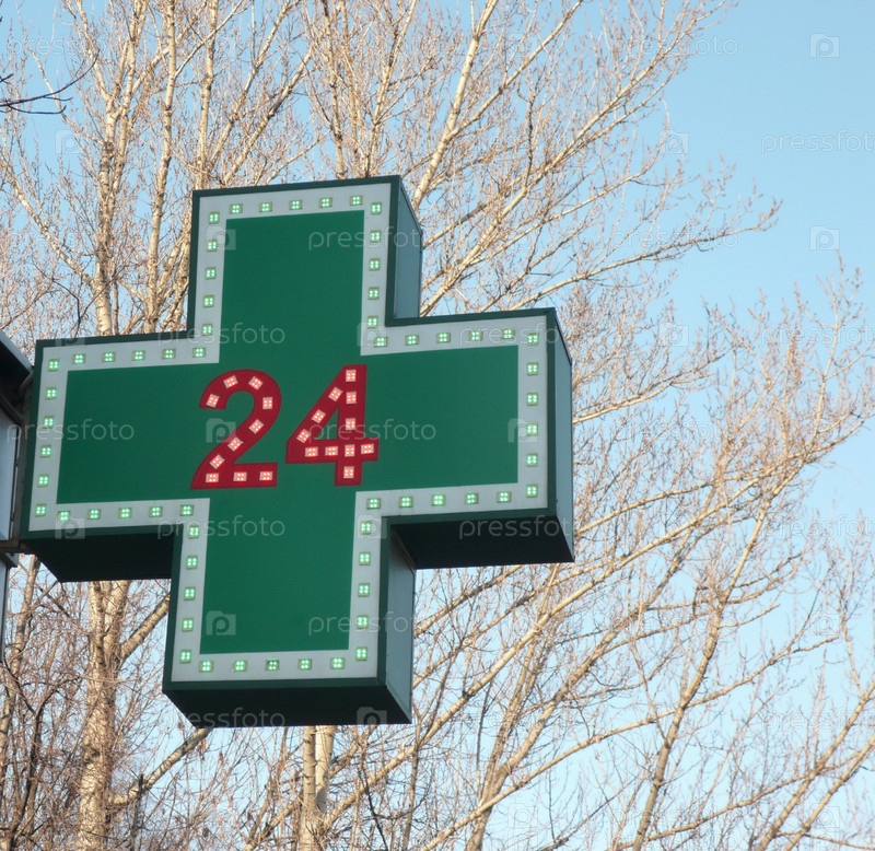 Двадцать четыре часа в аптеке медицинская вывеска на дне