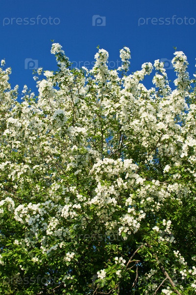 Цветущая яблоня на фоне неба